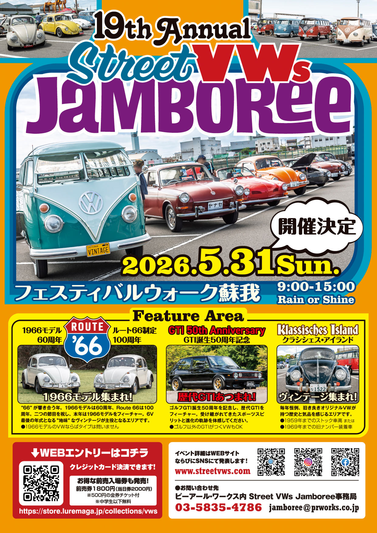 第19回ストリートVWsジャンボリーを2026年5月31日(日)にフェスティバルウォーク蘇我で開催することが決定しました! たくさんのエントリーお待ちしております!